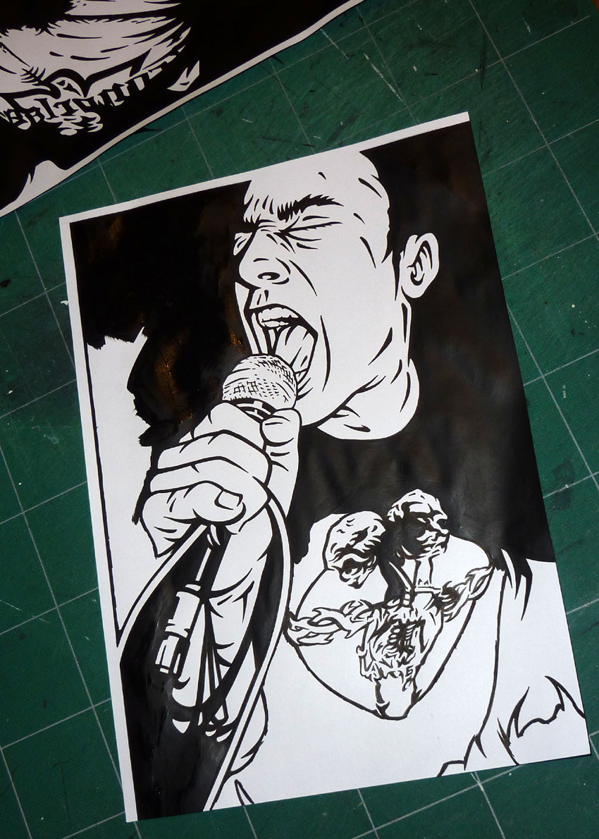 Puis remplissage des aplats à l'acrylique noires...